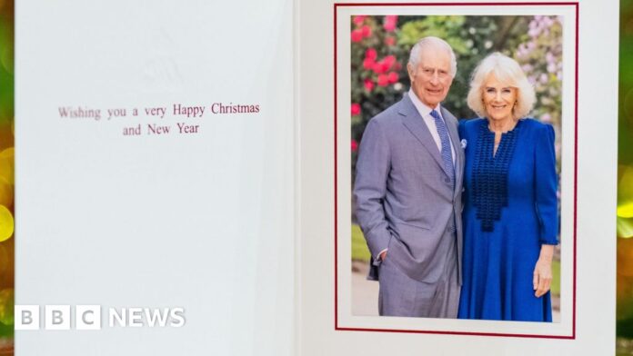 This photograph is their third Christmas card since Charles became King.