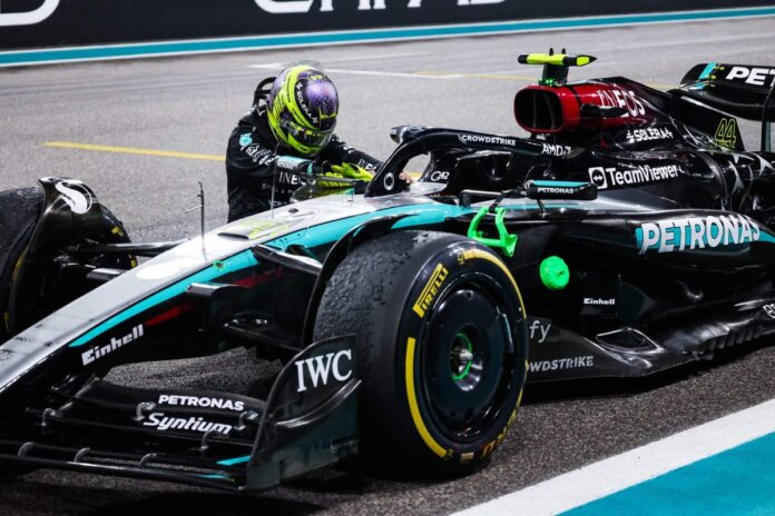ABU DHABI, United Arab Emirates — Stooped beside his silver and black Mercedes W15 car on the main straight of the Yas Marina Circuit on Sunday, Lewis Hamilton paused to soak up the moment.