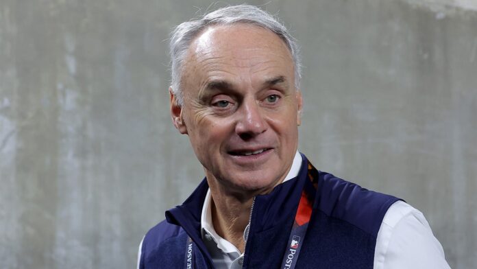 MLB Commissioner Rob Manfred before game four of the 2024 MLB World Series between the Los Angeles Dodgers and New York Yankees at Yankee Stadium. (Brad Penner/Imagn Images)