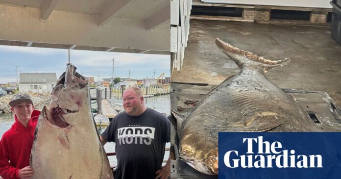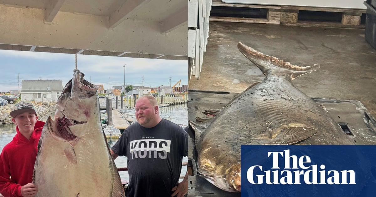A young teenager on a deep-sea fishing trip this week in New England hauled in a 177lb (80kg) Atlantic halibut, a fish bigger and heavier than he is, and one that could be a world record.