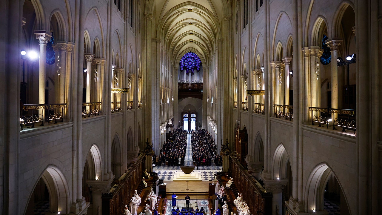 Guests from all around the world attended Notre Dame’s inaugural Mass, the first held at the cathedral since 2019. (Sarah Meyssonnier/Pool Photo via AP)