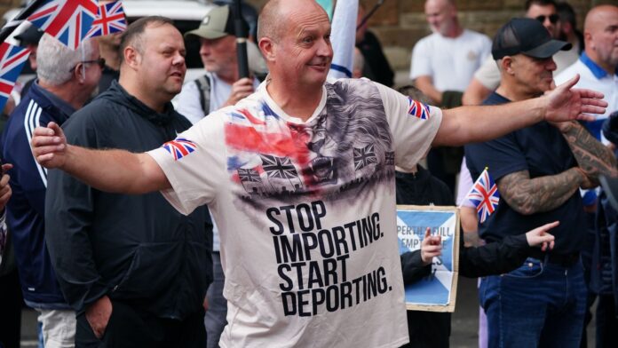 Anti-immigration protesters also chanted: “Tommy, Tommy, Tommy, Tommy Robinson” in support of the far-right activist, whose real name is Stephen Yaxley-Lennon.